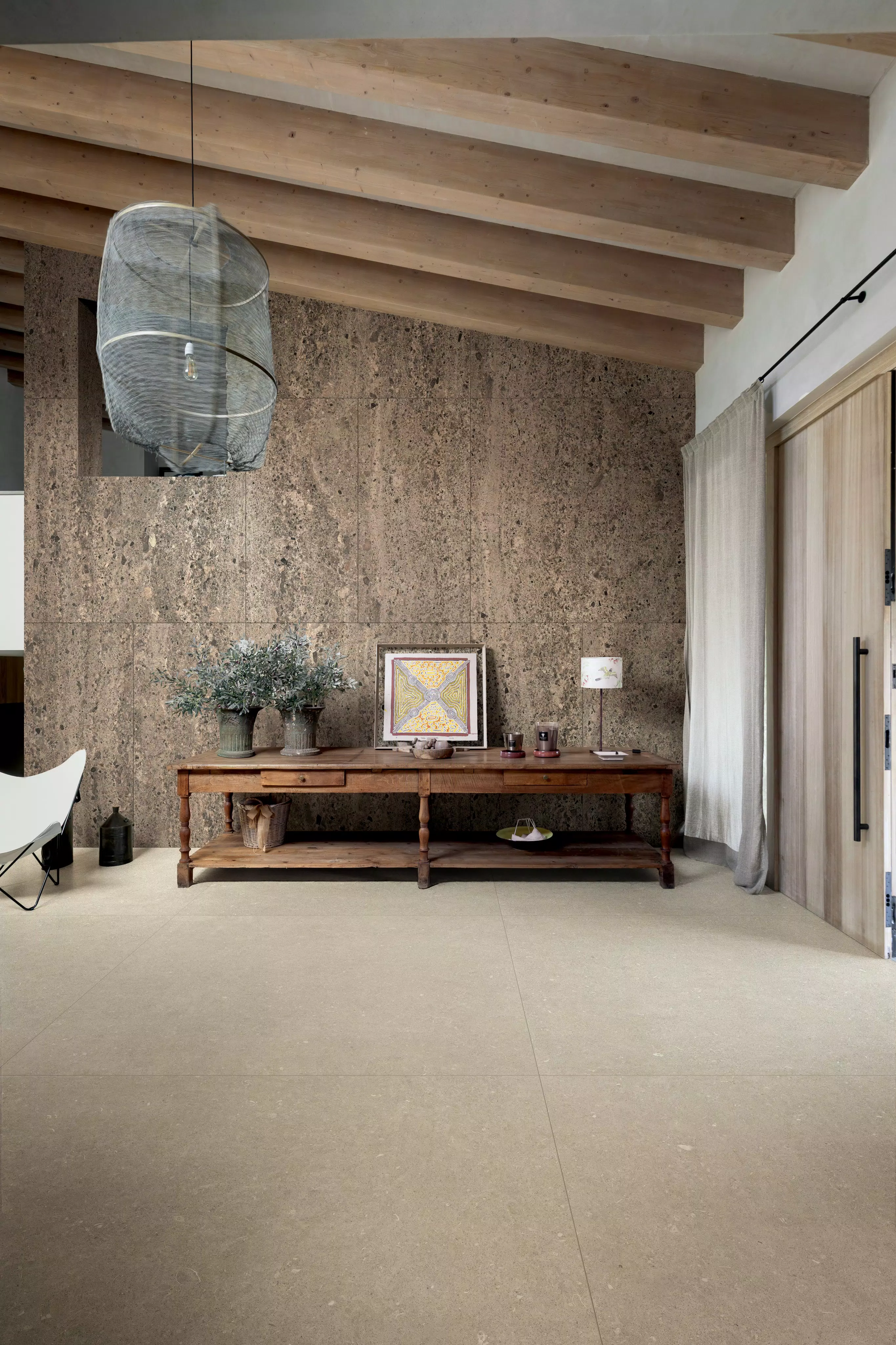 The original intention is to explore the surface as a cultural language, delving into the roots of Italian architecture and reinterpreting its iconic elements with a contemporary and essential gaze: from sandstone to metal weaves, from Tuscan stone to the uniqueness of cork.