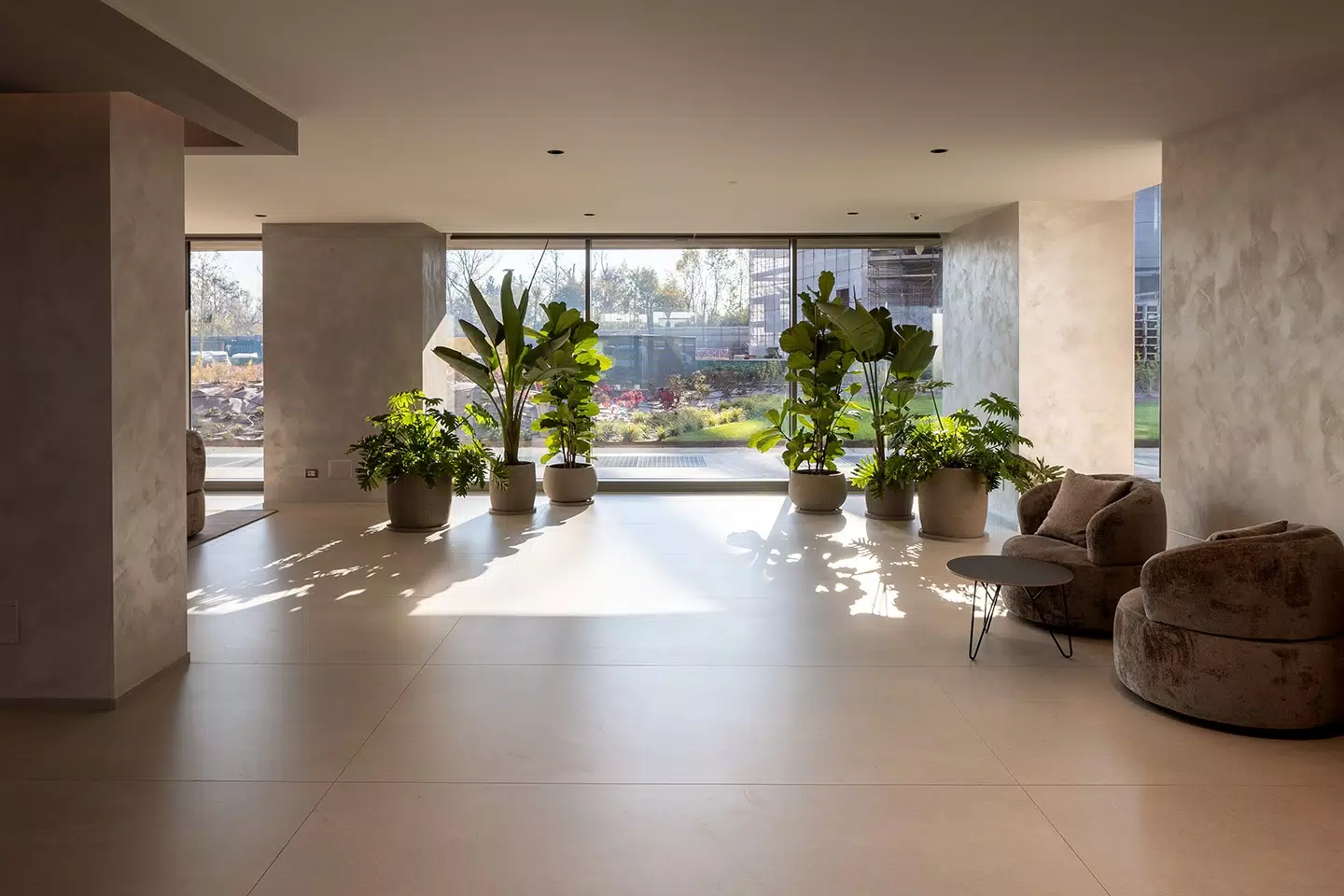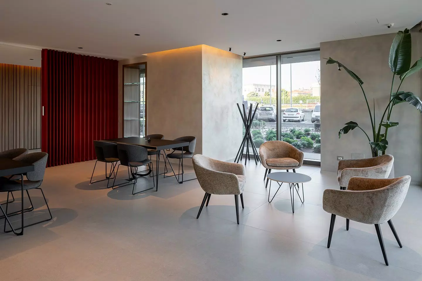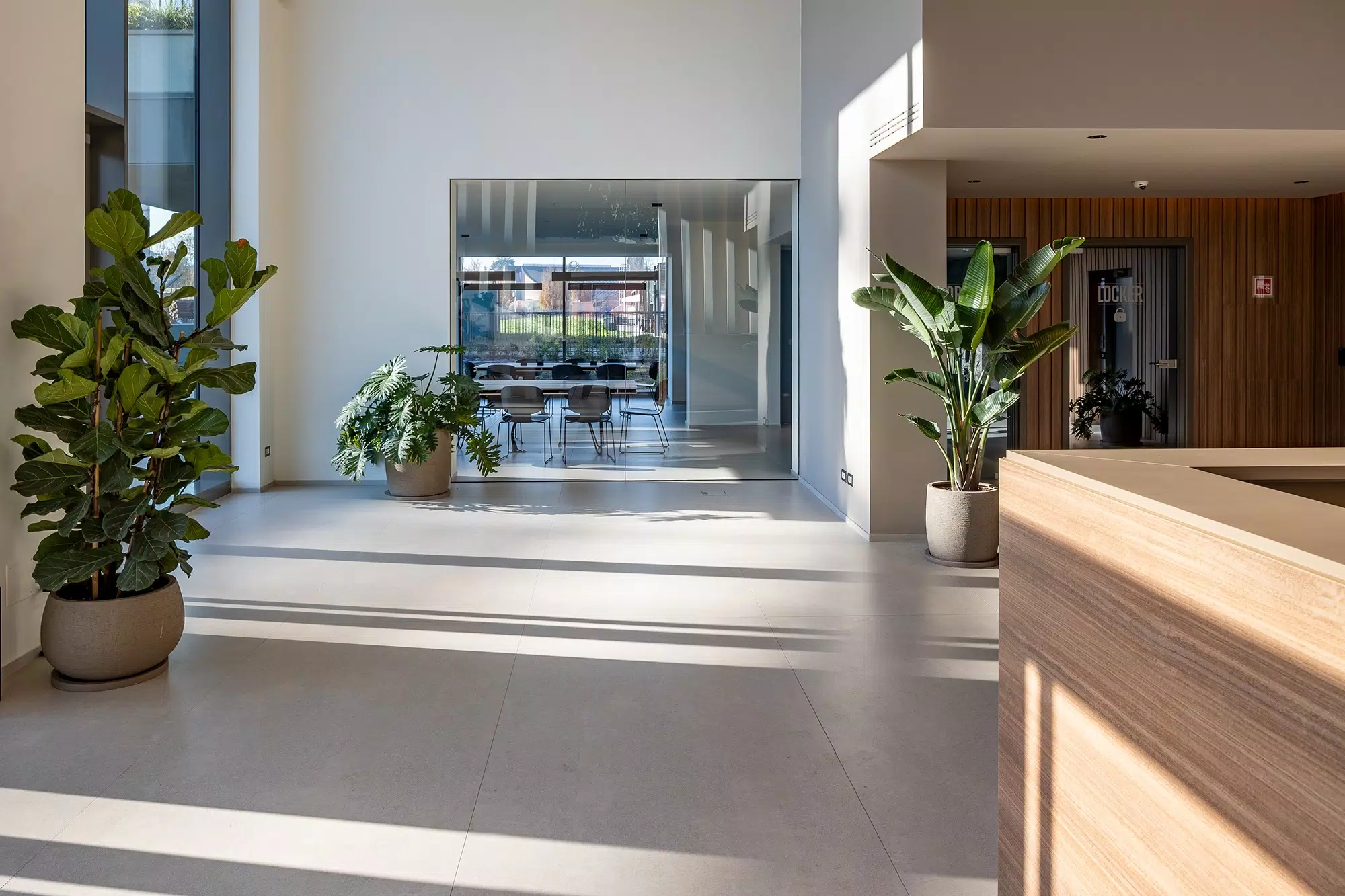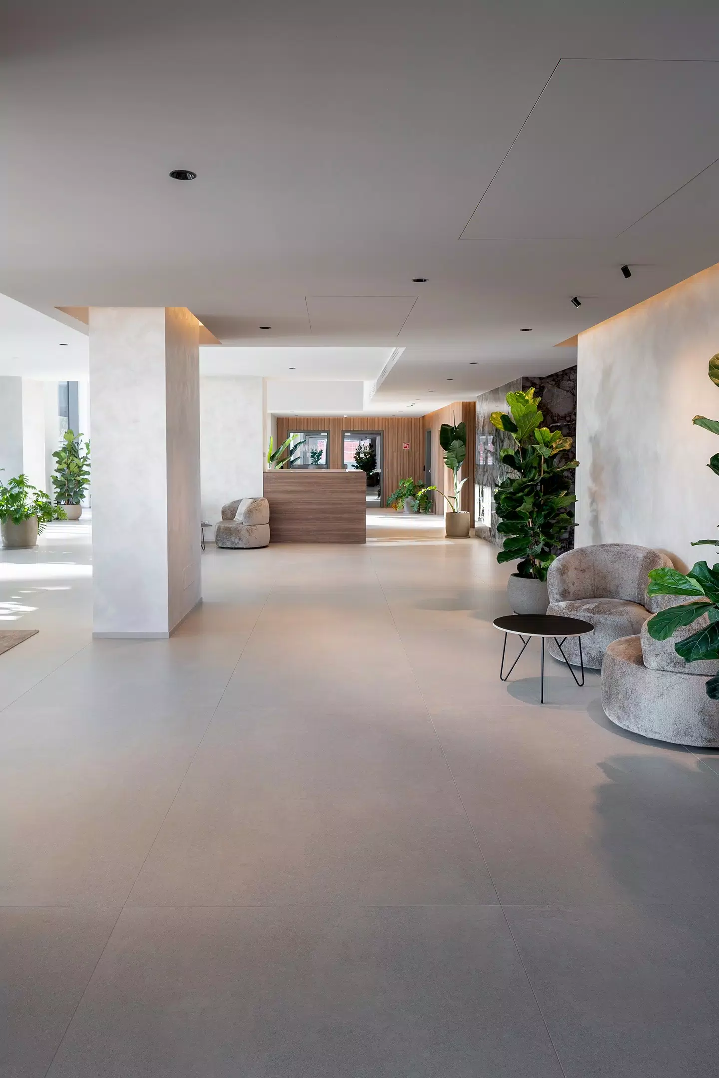 For the flooring, the Biotech collection was selected, ideal for high-traffic areas thanks to its high technical performance and essential look. The combination of aesthetics and functionality makes these surfaces perfect for a contemporary context that values durability.