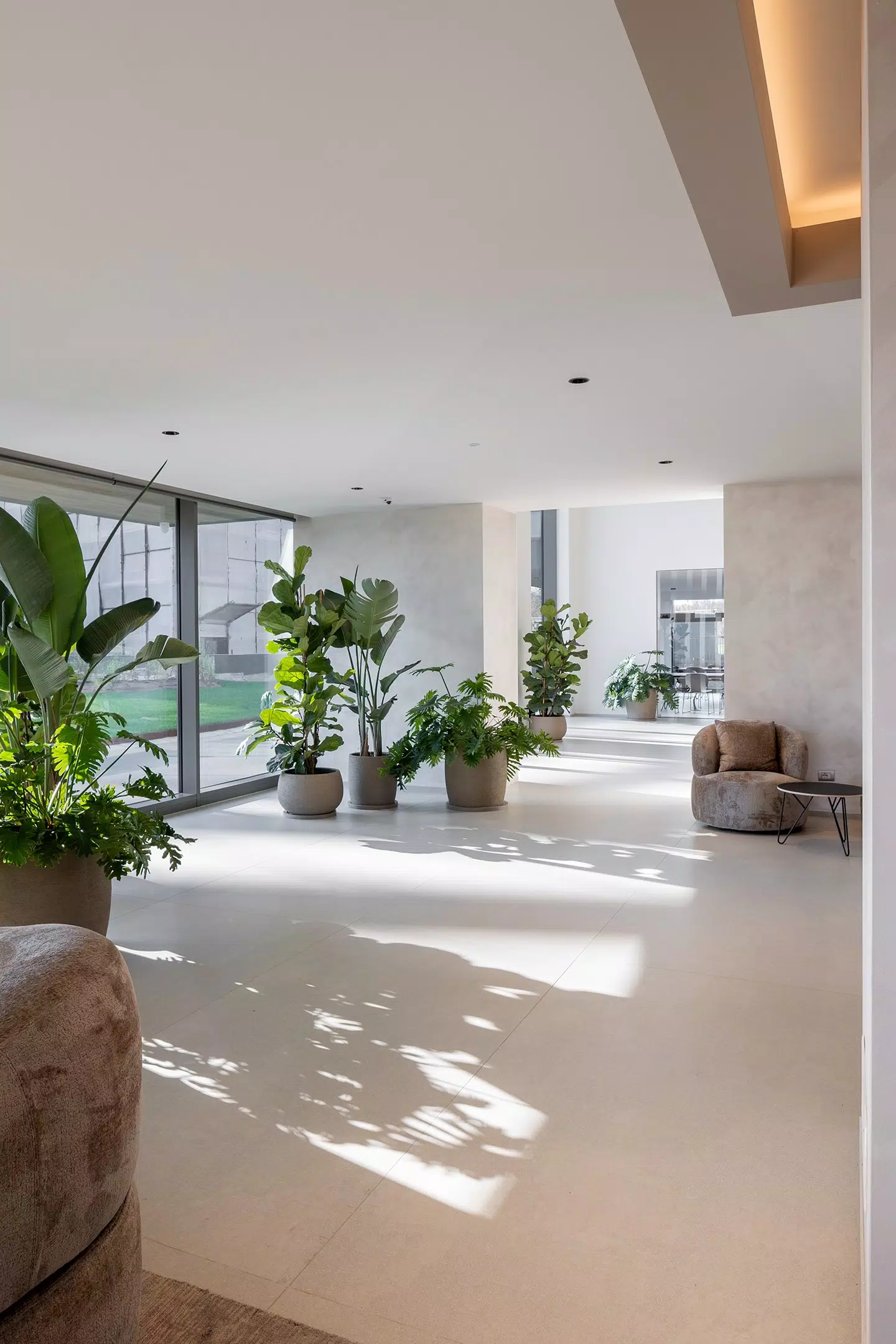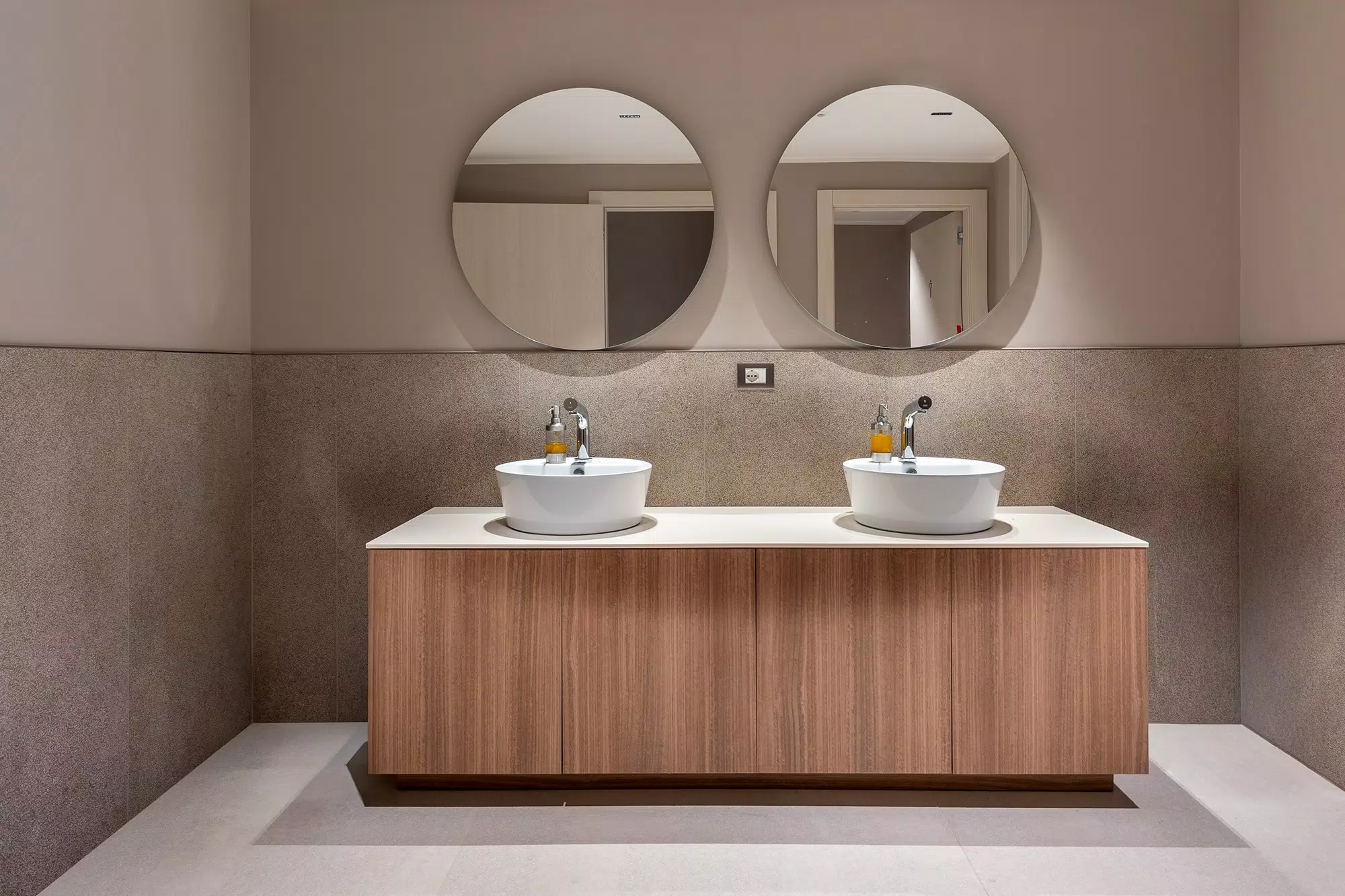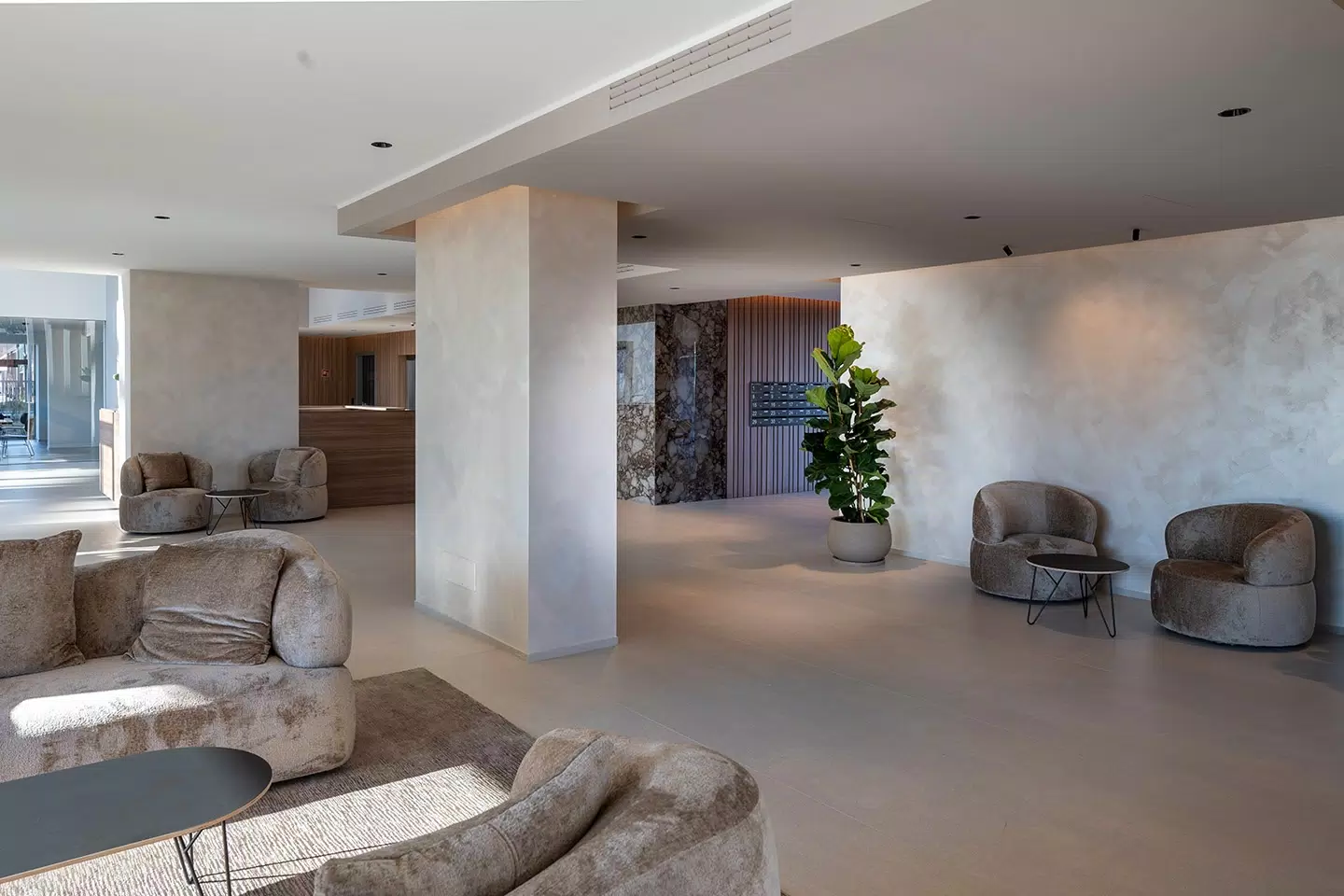 For the flooring, the Biotech collection was selected, ideal for high-traffic areas thanks to its high technical performance and essential look. The combination of aesthetics and functionality makes these surfaces perfect for a contemporary context that values durability.