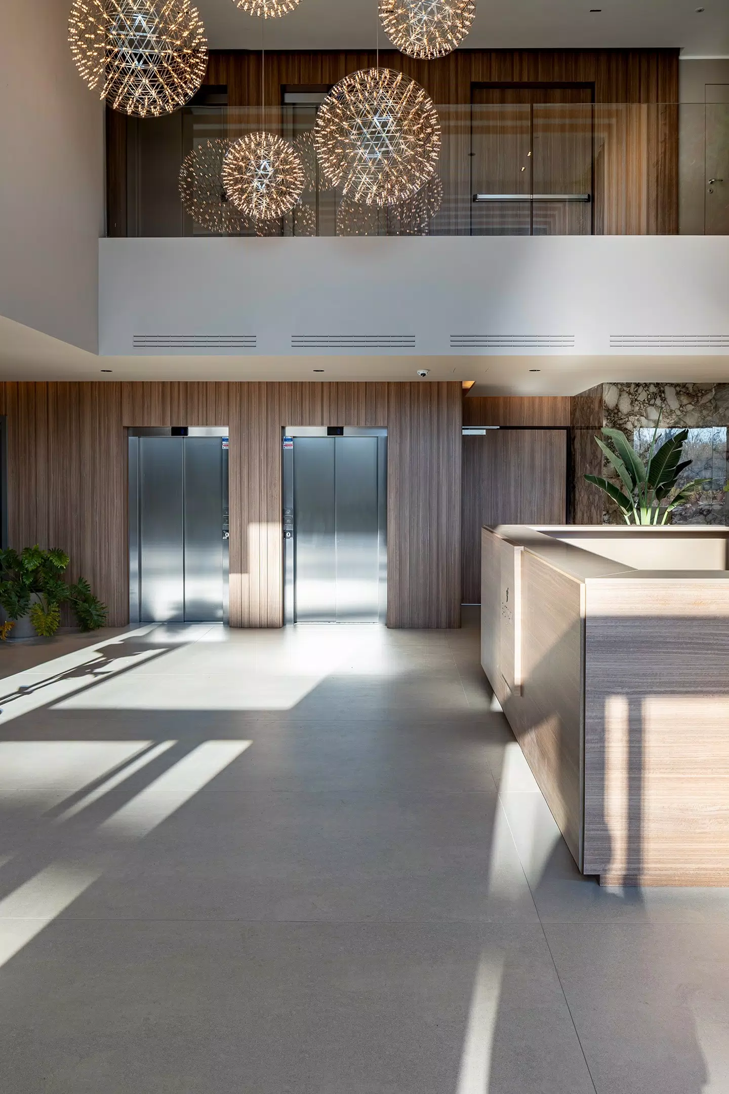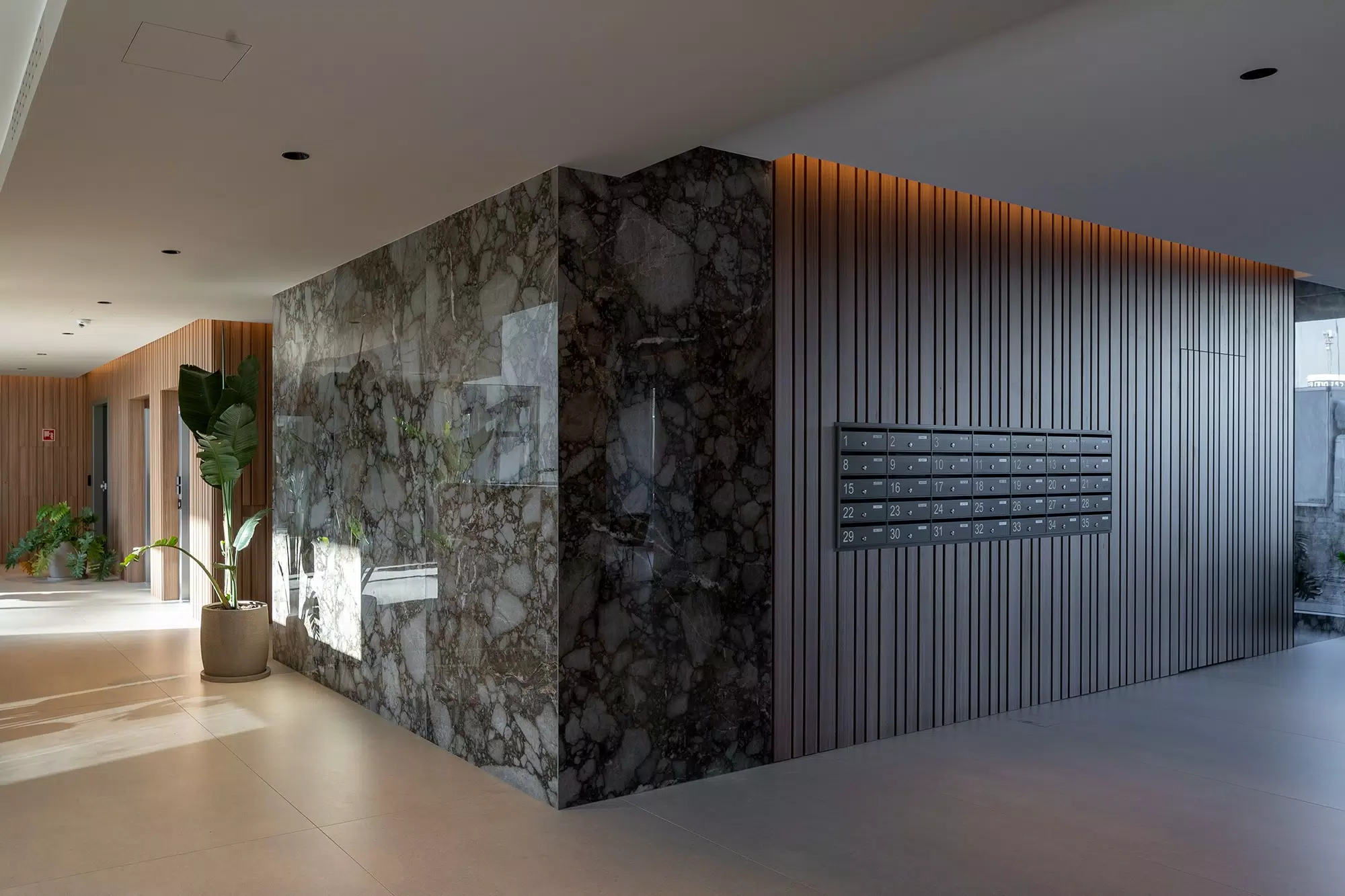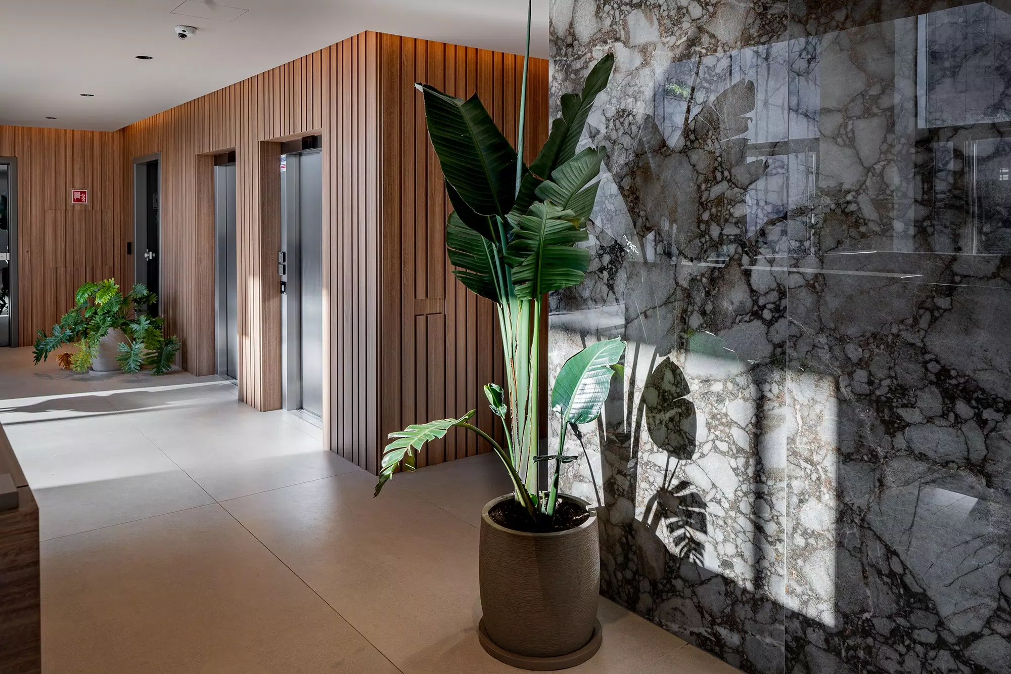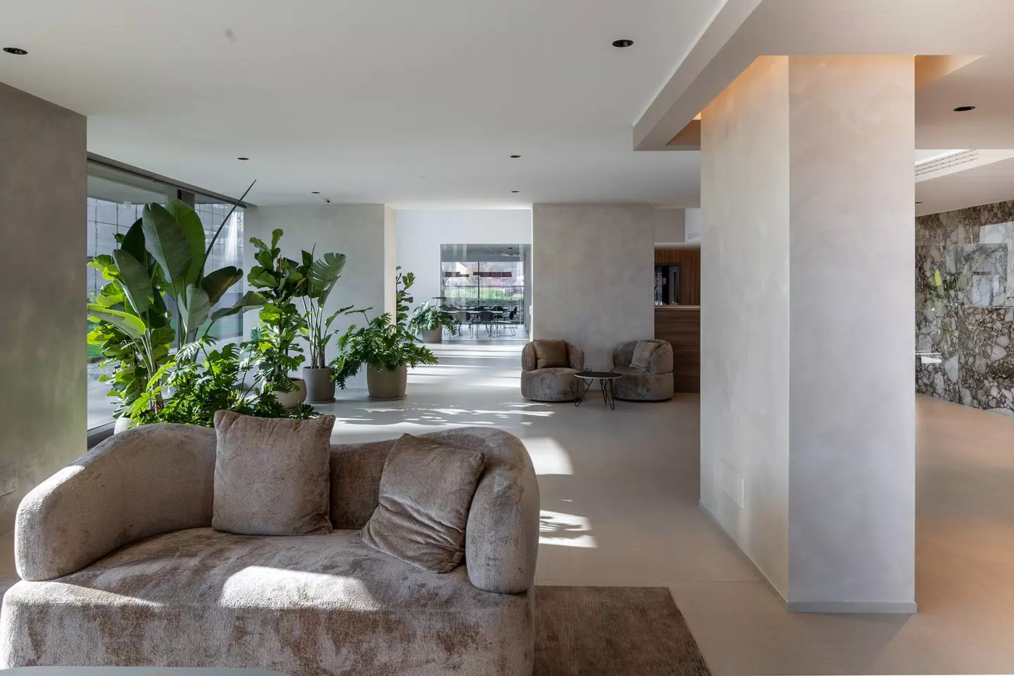 For the flooring, the Biotech collection was selected, ideal for high-traffic areas thanks to its high technical performance and essential look. The combination of aesthetics and functionality makes these surfaces perfect for a contemporary context that values durability.